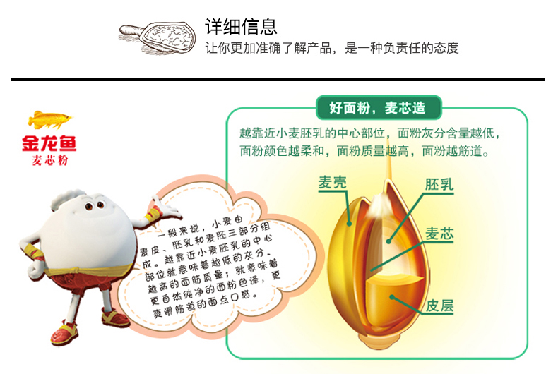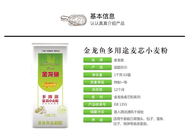 金龍魚多用途麥芯小麥粉,立足于滿足中******庭日常面點制作要求,具有良好的通用性。適合家庭日常饅頭,包子,餃子,面條,烙餅等各類面食使用。制作餃子,面條爽滑筋道,制作饅頭,包子麥香濃郁。
